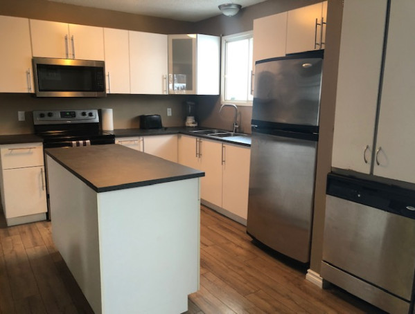 Furnished 4 bedroom, 2 bath home in quiet neighborhood. BBQ, washer and dryer, fully equipped kitchen, lots of parking and much more. All utilities, Telus Optik TV/ Internet and yard maintenance are included with the rent.