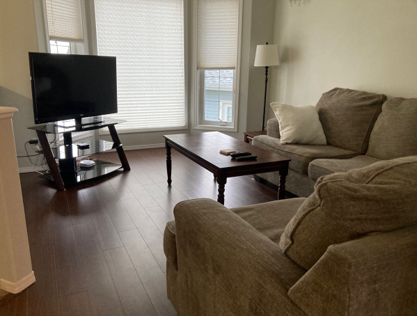 This house comes with a large kitchen, living rooms upstairs and down, master bedroom with ensuite bathroom, all 5 bedrooms equipped with tvs, large deck with bbq and the added bonus of a double garage. Good location with quick access to major roads / highways as well as multiple shopping and dining establishments. As always, housekeeping service and yard maintenance is included in the rent payment.